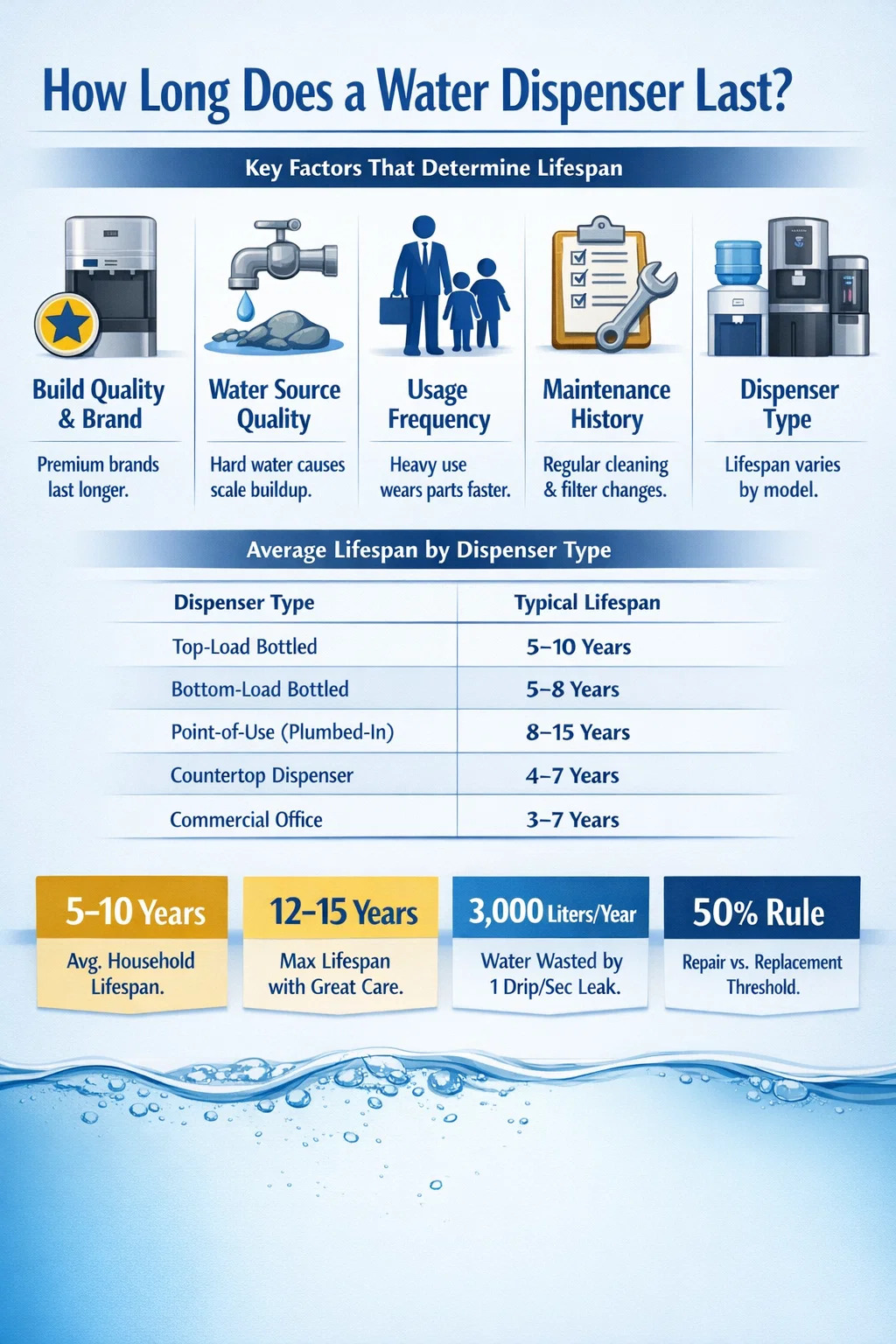 Shrnutí: Klíčová čísla, která byste měli vědět o životnosti dávkovače vody