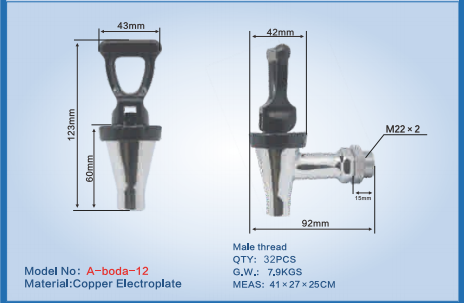 3. Příslušenství kohoutku: tělo kohoutku, rukojeť, O-kroužky atd.
