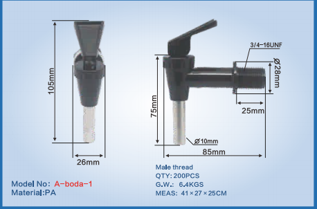 3. Příslušenství kohoutku: tělo kohoutku, rukojeť, O-kroužky atd.