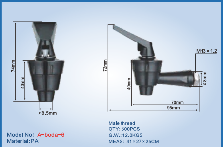 3. Příslušenství kohoutku: tělo kohoutku, rukojeť, O-kroužky atd.