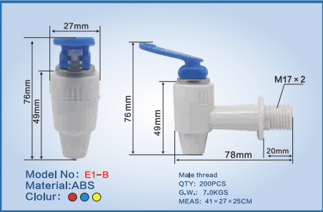 3. Příslušenství kohoutku: tělo kohoutku, rukojeť, O-kroužky atd.